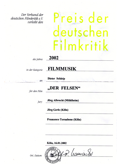 PREIS DER DEUTSCHEN FILMKRITIK 2002 in der Kategorie: "Beste Kinomusik"!