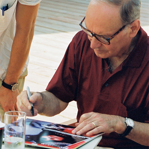 Ennio Morricone signiert einige der Mondo LPs beim Filmfestival in Locarno 2003.